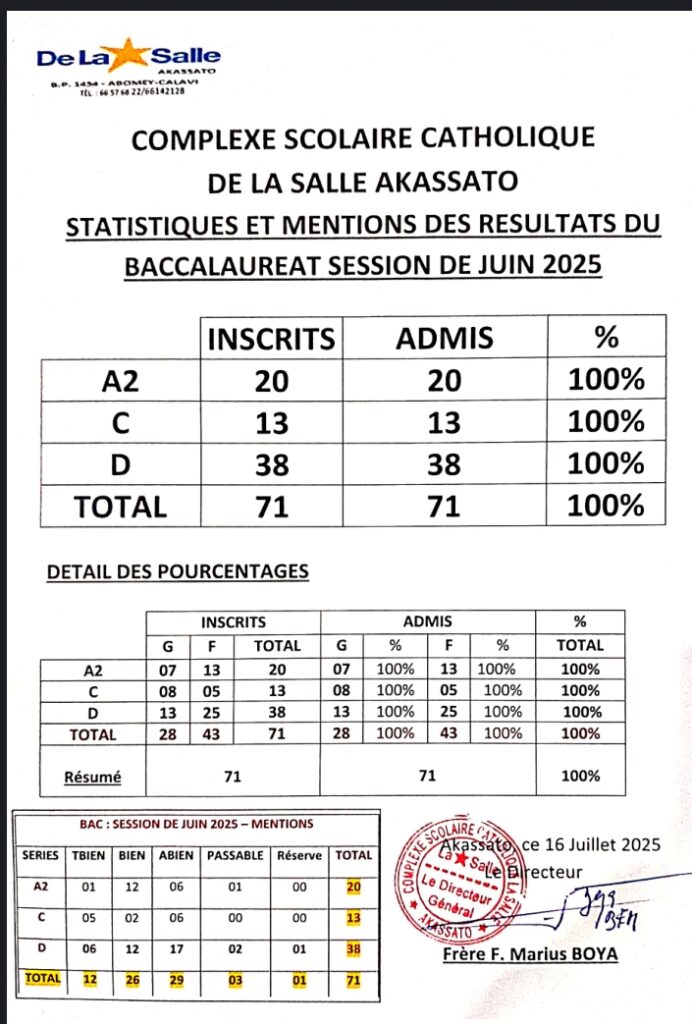Avec un tel palmarès, le Complexe Scolaire Catholique de La Salle d’Akassato s’impose plus que jamais comme un modèle d’enseignement alliant rigueur académique, éducation chrétienne et réussite durable.